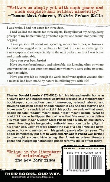 Charles Donald Lowrie (1875-1925) left his Massachusetts home as a young man and hopscotched westward working as a stenographer, construction camp timekeeper, bookkeeper, railroad laborer, and traveling salesman before finding himself in Los Angeles starving and broke save for a vandalized nickel in his pocket - a nickel that would decide his fate: "heads" meant crime, "tails" meant suicide. What he couldn't know as he flipped that coin was that fate would soon deliver a 15-year "jolt" in San Quentin State Prison and a wildly unique literary career. Pursuing his burgeoning authorial ambitions by lamplight in his prison cell, Lowrie's work caught the eye of a San Francisco newspaper editor who assisted with his gaining parole after ten years. The editor immediately put him to work and My Life in Prison was birthed to overnight success, kickstarting the American prison literature genre and instigating nationwide prison reforms still in effect today. ¿¿We Heathens have striven to enhance the text that you're about to experience as much as possible, with the first enhancement being the inclusion of Donald Lowrie's original San Quentin mugshots. We have also corrected myriad spelling and punctuation errors, in addition to updating a few archaic and hyphenated words to reflect their modern usage. Additionally, we have added some 250 footnotes with further corrections and to supplement the text with context, clarification, and commentary as needed. We've also added section breaks in some of the chapters to help with Lowrie's sometimes jarring tendency to switch topics without warning. We were also able to locate several photos of San Quentin approximate to the period of Lowrie's incarceration, circa 1890s-1910s, which we have included where appropriate. And, in addition to Lowrie's mugshots, we were able to locate nearly two dozen more mugshots of inmates who populate this story, which we have placed where they seem most appropriate within the text.