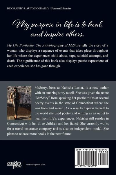 My Life Poetically: The Autobiography of MzStory tells the story of a woman who displays a sequence of events that takes place throughout her life where she experiences child abuse, rape, suicidal attempts, and death. The significance of this book also displays poetic expressions of each experience she has gone through.