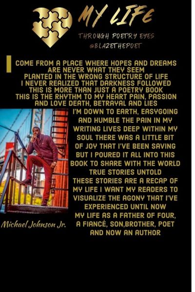 My Life Through Poetry Eyes is a book of poetry by Michael Johnson, Jr. True stories untold ... This is more than just a poetry book, this is the rhythm to my heart, pain, passion, love death betrayal and lies.