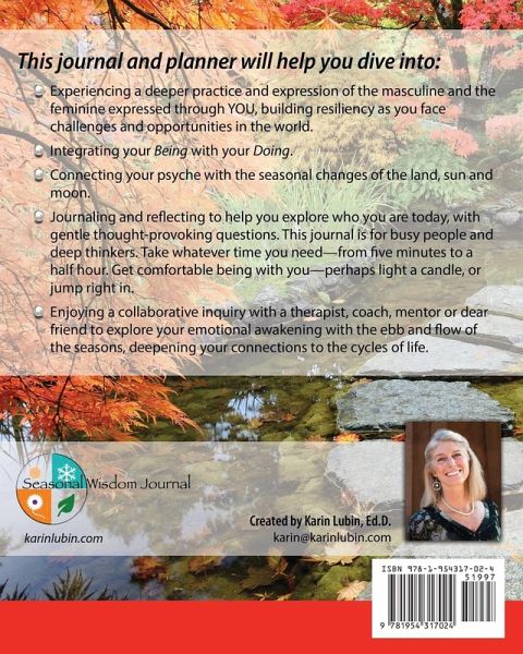 A Powerful Reflective Tool for Coaches, Counselors, Therapists, Group Leaders and Their Clients My Life through the Seasons, A Wisdom Journal and Planner is a fillable journal based on the seasons designed for busy people and deep thinkers. This structured journal is designed to build emotional intelligence and help build inner and outer resiliency by filling in just two pages a day. It is a different kind of guided journal that encourages connection to the seasons while building on the feminine, intuitive, and creative aspects to balance the masculine energies that we all have. This Journal is for you if:You love the outdoors and want to feel more connected spiritually and physically to the changing seasons. You value personal growth and value self-reflection. You are in the helping professions and need a new tool for your clients-or are in need of more structured self-care yourself. You enjoy writing as a way to help you dive deeper. You want to embrace and integrate the feminine and masculine energies within you. Use this wisdom journal to reconnect with and rediscover yourself, and find your inner peace and tranquility. Get in touch with nature and feel more grounded and connected to the power of the seasons. Build your strength, your resiliency, and your courage so that we can all meet the needs of our changing world. Introspective personal growth seekers, heart-centered professionals, and lovers of the outdoors will experience:Reduced overwhelm. More balance by integrating your masculine and feminine energies. Greater expression of feelings, intuition and creativity. Transformation always starts within, so start today-whether you are a therapist or coach working with clients, or an individual seeking greater support.