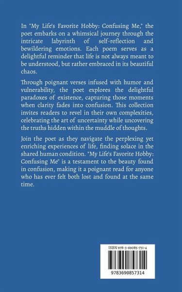 In "My Life's Favorite Hobby: Confusing Me," the poet embarks on a whimsical journey through the intricate labyrinth of self-reflection and bewildering emotions. Each poem serves as a delightful reminder that life is not always meant to be understood, but rather embraced in its beautiful chaos. Through poignant verses infused with humor and vulnerability, the poet explores the delightful paradoxes of existence, capturing those moments when clarity fades into confusion. This collection invites readers to revel in their own complexities, celebrating the art of uncertainty while uncovering the truths hidden within the muddle of thoughts. Join the poet as they navigate the perplexing yet enriching experiences of life, finding solace in the shared human condition. "My Life's Favorite Hobby: Confusing Me" is a testament to the beauty found in confusion, making it a poignant read for anyone who has ever felt both lost and found at the same time.