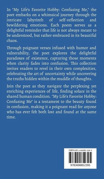 In "My Life's Favorite Hobby: Confusing Me," the poet embarks on a whimsical journey through the intricate labyrinth of self-reflection and bewildering emotions. Each poem serves as a delightful reminder that life is not always meant to be understood, but rather embraced in its beautiful chaos. Through poignant verses infused with humor and vulnerability, the poet explores the delightful paradoxes of existence, capturing those moments when clarity fades into confusion. This collection invites readers to revel in their own complexities, celebrating the art of uncertainty while uncovering the truths hidden within the muddle of thoughts. Join the poet as they navigate the perplexing yet enriching experiences of life, finding solace in the shared human condition. "My Life's Favorite Hobby: Confusing Me" is a testament to the beauty found in confusion, making it a poignant read for anyone who has ever felt both lost and found at the same time.
