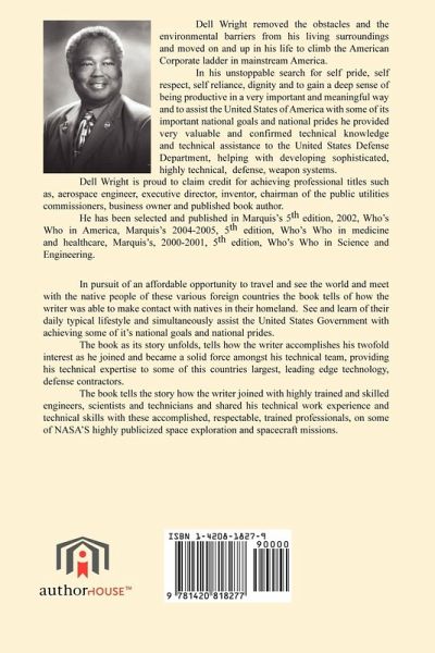 In pursuit of an affordable opportunity to travel and see the world and meet with the native people of these various foreign countries, the book tells of how the writer was able to make contact with natives in their homeland, see and learn of their daily, typical lifestyle and simultaneously, assist the United States Government with achieving some of it's national goals and national prides. The book, as its story unfolds, tells how the writer accomplishes his twofold interest, as he joined and became a solid force amongst his technical team, providing his technical expertise to some of this countries largest, leading edge technology, defense contractors. The book tells the story how the writer joined with highly trained and skilled engineers, scientists, and technicians and shared his technical work experience and technical skills with these respectable, trained professionals on some of NASA's, highly publicized, space explorations and missions programs. Dell Wright has traveled to such exotic places as, Hong Kong China, Singapore, Bangkok Thailand, Taiwan, Nigeria and Kenya Africa, Saudi Arabia, Morocco, Jordan, Ecuador, S.A., Bogota, Columbia, S.A., England, Germany, Amsterdam, Mahe Seychelles Island and more.