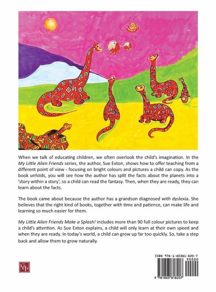 Sue Exton was born in Yorkshire, England, and now lives in north Lincolnshire. She studied painting with Eric Littlewood, a member of the Royal Academy, and she has sold paintings all over the world. But, after publishing and illustrating books on art, she now writes books for children, and 'My Little Alien Friends' is the first in a new collection of three. Hopefully they will all be in print by 2025.
