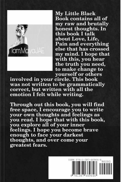 My Little Black Book contains all of my raw and brutally honest thoughts. In this book I talk about Love, Life, Pain and everything else that has crossed my mind. I hope that with this, you hear the truth you need, to make change to yourself or others involved in your circle. This book was not written to be grammatically correct, but written with all the emotion I felt while writing.