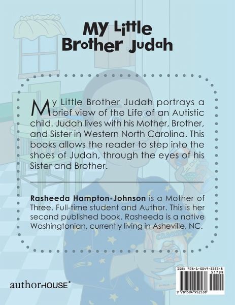 My Little Brother Judah portrays a brief view of the Life of an Autistic child. Judah lives with his Mother, Brother, and Sister in Western North Carolina. This books allows the reader to step into the shoes of Judah, through the eyes of his Sister and Brother.