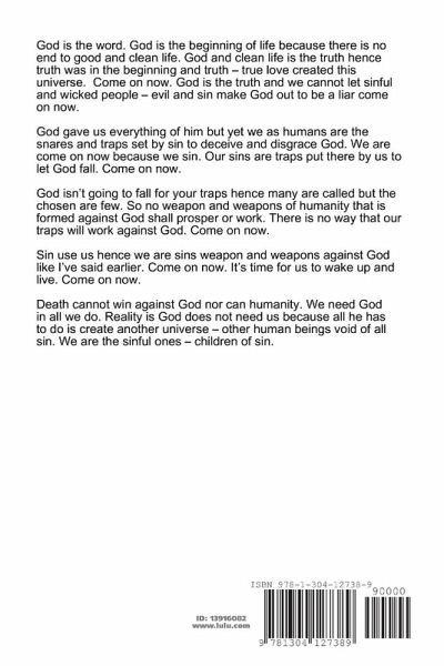 This book is a continuation of my spiritual journey in finding God and my place in life - happiness. This book asks many questions of man in regards to the relationship we claim to have with it God.
