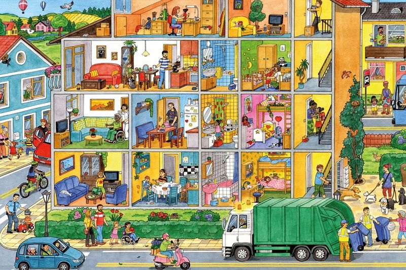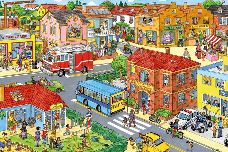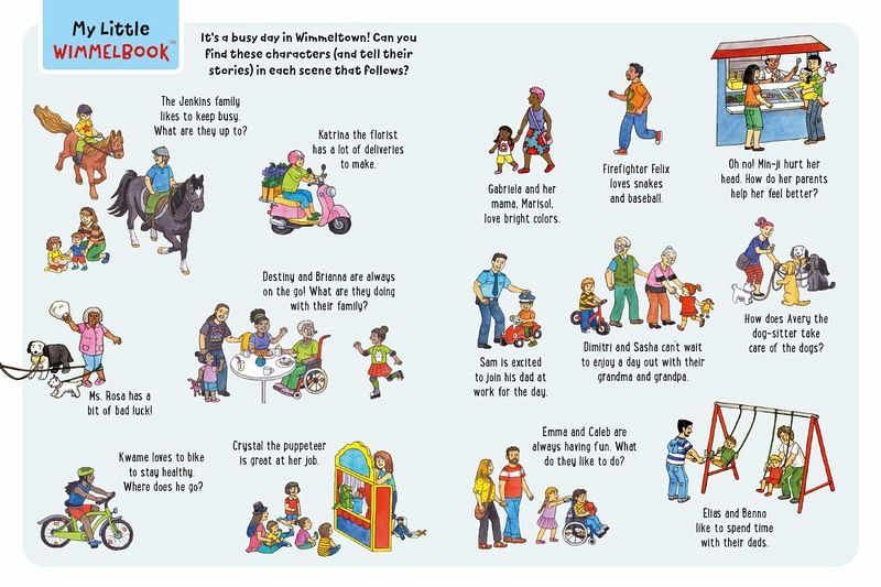 In these board books, every page is bursting with life-and tons to discover! Wimmelbooks are virtually instruction-free, inviting kids to make their own way through the busy Wimmelworld they encounter, and to craft their own stories. Children as young as age 2 have a blast pointing out recognizable things-a blue tricycle, a hungry dog, a piggyback ride-while older kids can follow the star characters from page to page, telling their stories along the way. My Little Wimmelbook®-My Busy Day invites young readers to follow kids, families, friends, and workers as they go about their routines from school to the mall to the playground and more. It's the same exciting peek into what different kinds of people do each day, made just the right size for portable fun. About Wimmelbooks Wimmelbooks originated in Germany decades ago and have become a worldwide sensation with children (and adults!) everywhere. My Big Wimmelbooks is the first-ever Wimmelbook series to feature Wimmelbooks as Wimmelbooks in English. They've been praised as "lively . . . and abounding with humor and detail" (WSJ), likely to "make any parent's heart sing." (NYT)