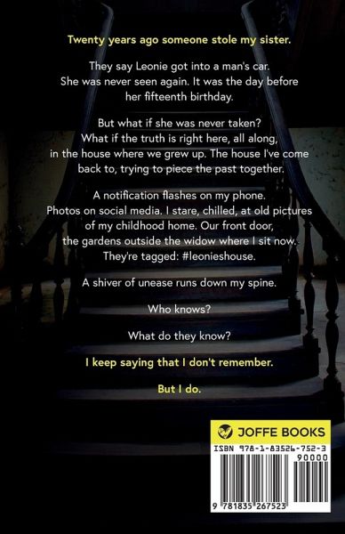 Twenty years ago someone stole my sister. They say Leonie got into a man's car. But what if she was never taken? What if the truth is right here, in the house where we grew up? The house I've come back to, trying to piece the past together.