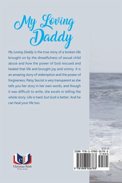 My Loving Daddy is the true story of a broken life brought on by the dreadfulness of sexual child abuse and how the power of God rescued and healed that life and brought joy and victory. It is an amazing story of redemption and the power of forgiveness. Patsy Secrist is very transparent as she tells you her story in her own words, and though it was difficult to write, she excels in telling the whole story. Life is hard, but God is better. And he can heal your life too.