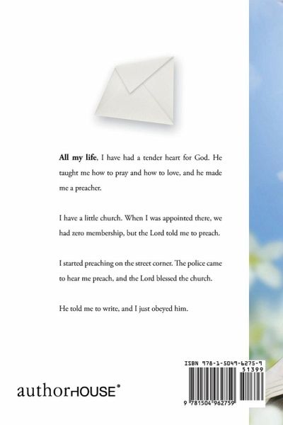 All my life, I have had a tender heart for God. He taught me how to pray and how to love, and he made me a preacher. I have a little church. When I was appointed there, we had zero membership, but the Lord told me to preach. I started preaching on the street corner. The police came to hear me preach, and the Lord blessed the church. He told me to write, and I just obeyed him.