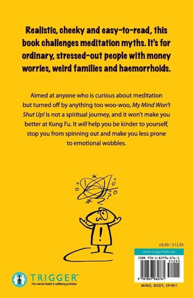 Realistic, cheeky and easy to read, My Mind Won't Shut Up! is a book that challenges meditation myths. It's for ordinary, stressed-out people with money worries, weird families and haemorrhoids.Written by two sturdy-legged Glaswegians with short attention spans, My Mind Won't Shut Up! is aimed at anyone who is curious about meditation but turned off by anything too woo-woo. It is not a spiritual journey, and it won't make you better at kung fu. It will help you be kinder to yourself, stop you from spinning out and make you less prone to emotional wobbles.