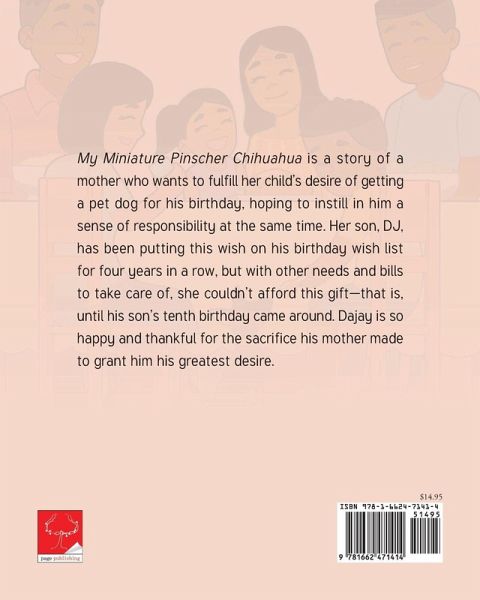 My Miniature Pinscher Chihuahua is a story of a mother who wants to fulfill her child's desire of getting a pet dog for his birthday, hoping to instill in him a sense of responsibility at the same time. Her son, DJ, has been putting this wish on his birthday wish list for four years in a row, but with other needs and bills to take care of, she couldn't afford this gift--that is, until his son's tenth birthday came around. Dajay is so happy and thankful for the sacrifice his mother made to grant him his greatest desire.
