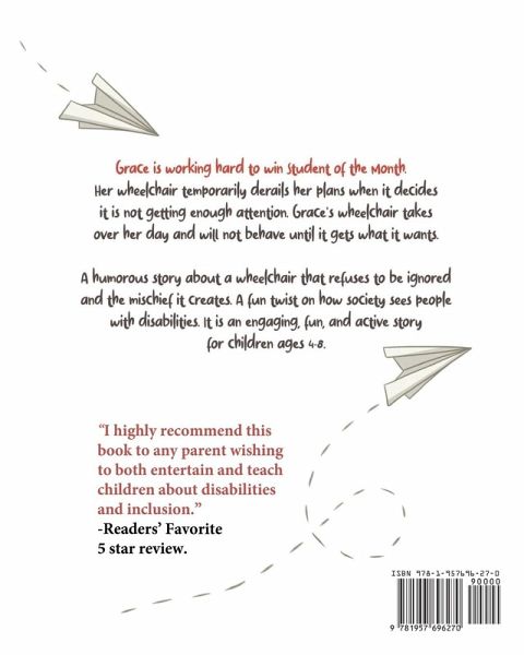 "The story is entertaining throughout... and the relationship between Grace and her wheelchair is especially dynamic. Our Verdict: Get it." -Kirkus Reviews (Recommended review)Grace is working hard to win the Student of the Month award, but her wheelchair keeps disrupting her day and getting her in trouble. Grace tries to regain control, but her wheelchair won't behave unless it gets what it wants. Will Grace figure out why her wheelchair is acting up and get it to behave before she loses out on being Student of the Month? Join Grace and her wheelchair that won't be ignored for a heartwarming and humorous story that teaches children ages 4-8 about diversity, inclusion and teamwork.