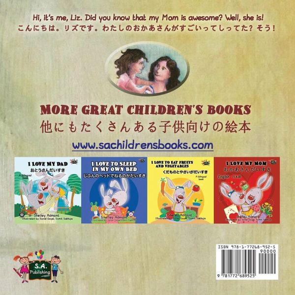 English Japanese Bilingual Book. Perfect for kids studying English or Japanese as their second language. In this touching bedtime story, a little girl describes why her Mom is awesome. We see her going through her day, carrying the warmest feeling about her mother. Mom always knows how she feels and can help with any problem. Mom can make the most complicated braid and explain fractions; Mom can help to wake her up in the morning and hug her tightly when she's sad. With adorable illustrations and a message to which everyone can relate, this is a perfect book for kids and their moms.
