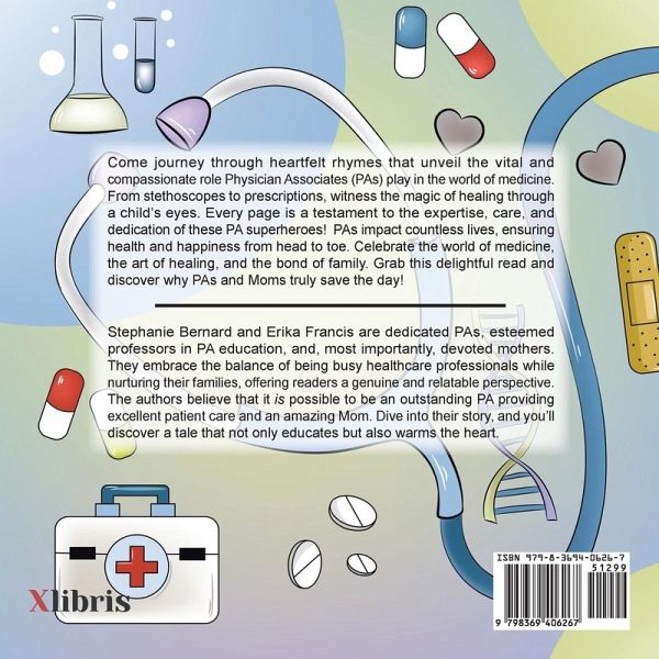 Come journey through heartfelt rhymes that unveil the vital and compassionate role Physician Associates (PAs) play in the world of medicine. From stethoscopes to prescriptions, witness the magic of healing through a child's eyes. Every page is a testament to the expertise, care, and dedication of these PA superheroes! PAs impact countless lives, ensuring health and happiness from head to toe. Celebrate the world of medicine, the art of healing, and the bond of family. Grab this delightful read and discover why PAs and Moms truly save the day!