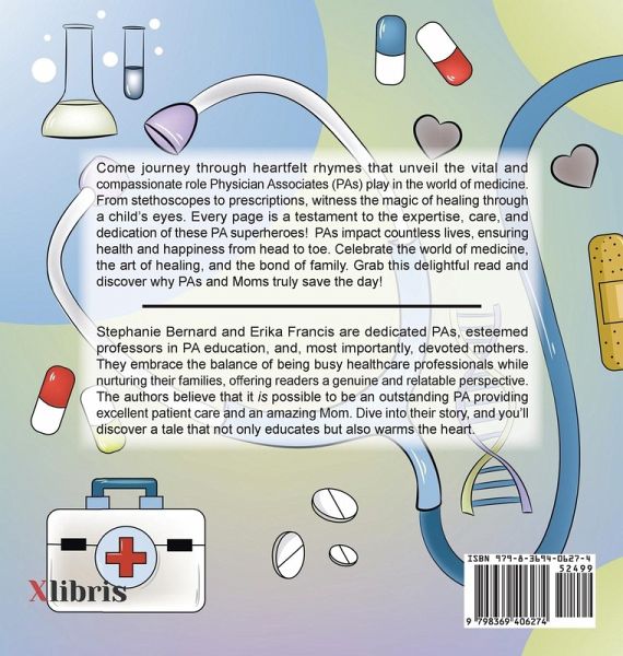Come journey through heartfelt rhymes that unveil the vital and compassionate role Physician Associates (PAs) play in the world of medicine. From stethoscopes to prescriptions, witness the magic of healing through a child's eyes. Every page is a testament to the expertise, care, and dedication of these PA superheroes! PAs impact countless lives, ensuring health and happiness from head to toe. Celebrate the world of medicine, the art of healing, and the bond of family. Grab this delightful read and discover why PAs and Moms truly save the day!