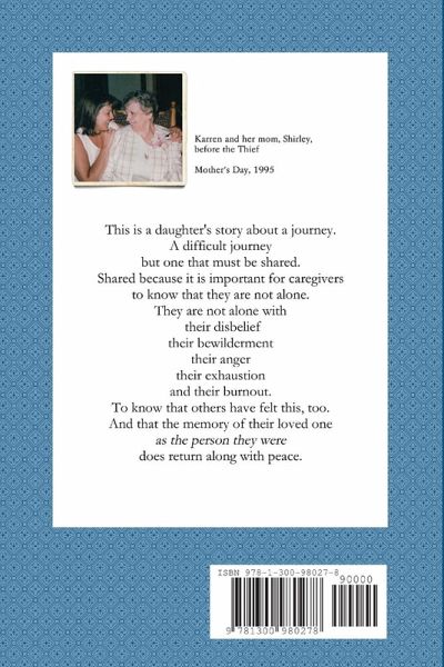 This is a daughter's story about her difficult journey caregiving for her mother who is suffering from dementia. This story describes the maze of processes and paperwork where advocacy is a must. It articulates the anger, bewilderment, belief, and burn-out that caregivers often feel. This book will help caregivers know that they are not alone and that the memory of their loved one, as the person they were, does return along with peace.