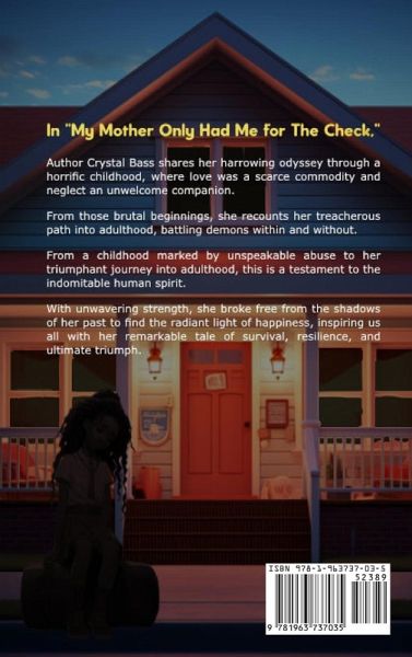 Prepare to embark on an unforgettable journey through the pages of "My Mother Only Had Me for the Check." From a childhood marred by abuse and neglect to the challenges of adulthood grappling with dyslexia and mental illness, the author's story is a testament to the resilience and power of a woman's spirit. Growing up in a world where safety and love were scarce commodities, she learned to navigate a landscape fraught with pain and uncertainty. Yet, amidst the darkness, she clung to the flicker of hope, determined to carve out a better future for herself. Through the ups and downs, rejections, and setbacks, she never lost sight of her dreams. With unwavering determination, she pursued her passion for writing, turning her pain into purpose and her struggles into stories. Each word is a testament to her resilience, a defiant declaration that her past or illness would not define her. Today, her autobiography is a beacon of hope for women who have walked similar paths. Her journey serves as a reminder that no matter how daunting the obstacles may seem, there is always light at the end of the tunnel for those who refuse to give up.