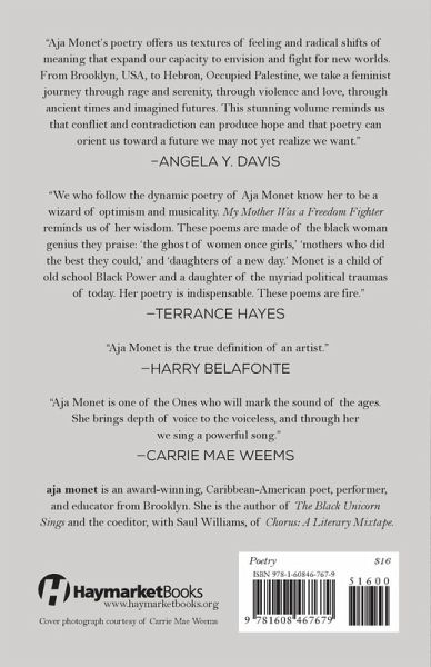 aja monet is a surrealist blues poet, musician, and cultural worker whose poems sing to us of love, gender, justice, and spirituality. A graduate of Sarah Lawrence College and the School of the Art Institute of Chicago, her writing sways between realms where the poetic is both a prayer and a call to action. Her debut poetry collection, My Mother Was a Freedom Fighter, a tribute to women and girls in the pursuit of freedom, earned a 2018 NAACP Image Award nomination for poetry. In 2023, she released When the Poems Do What They Do, a debut album of jazz and blues poetry. In 2024, she earned a Grammy nomination for Best Spoken Word Poetry Album, a testament to her voice, both on the page and in the world. As artistic creative director for the Voices: A Scared Sisterscape audioplay and campaign with V-Day, monet is part of the global movement to end violence against women and girls. monet is a recipient of the EBONY Power 100 Artist in Residence Award, Tribeca Film Festival's Harry Belafonte Social Justice Award, and the Nelson Mandela Changemaker Award.