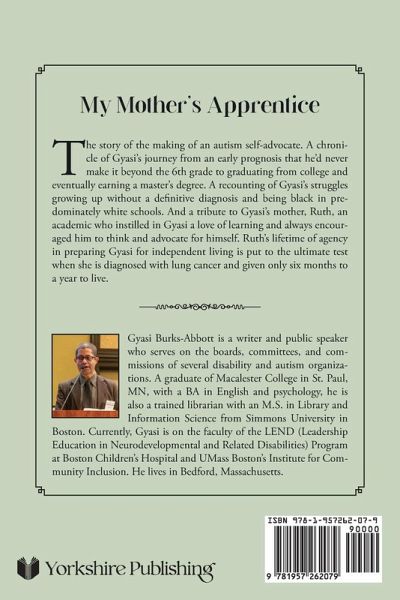 The story of the making of an autism self-advocate. A chronicle of Gyasi's journey from an early prognosis that he'd never make it beyond the 6th grade to graduating from college and eventually earning a master's degree. A recounting of Gyasi's struggles growing up without a definitive diagnosis and being black in predominately white schools. And a tribute to Gyasi's mother, Ruth, an academic who instilled in Gyasi a love of learning and always encouraged him to think and advocate for himself. Ruth's lifetime of agency in preparing Gyasi for independent living is put to the ultimate test when she is diagnosed with lung cancer and given only six months to a year to live.