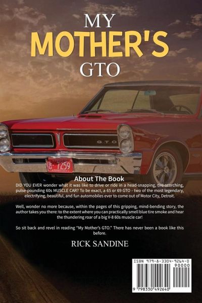 DID YOU EVER wonder what it was like to drive or ride in a head-snapping, tire-scorching, pulse-pounding 60s MUSCLE CAR? To be exact, a 65 or 69 GTO - two of the most legendary, electrifying, beautiful, and fun automobiles ever to come out of Motor City, Detroit. Well, wonder no more because, within the pages of this gripping, mind-bending story, the author takes you there: to the extent where you can practically smell blue tire smoke and hear the thundering roar of a big V-8 60s muscle car! So sit back and revel in reading "My Mother's GTO." There has never been a book like this before.