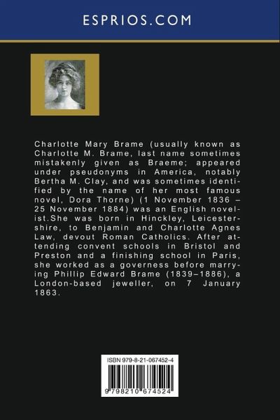 Charlotte Mary Brame (usually known as Charlotte M. Brame, last name sometimes mistakenly given as Braeme; appeared under pseudonyms in America, notably Bertha M. Clay, and was sometimes identified by the name of her most famous novel, Dora Thorne) (1 November 1836 - 25 November 1884) was an English novelist. She was born in Hinckley, Leicestershire, to Benjamin and Charlotte Agnes Law, devout Roman Catholics. After attending convent schools in Bristol and Preston and a finishing school in Paris, she worked as a governess before marrying Phillip Edward Brame (1839-1886), a London-based jeweller, on 7 January 1863.