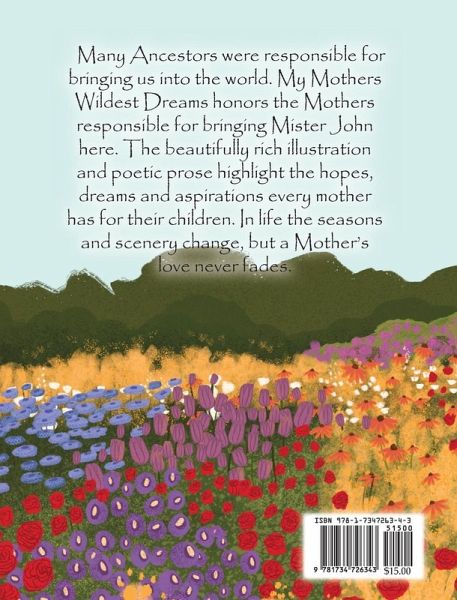 Many Ancestors were responsible for bringing us into the world. My Mothers Wildest Dreams honors the Mothers responsible for bringing Mister John here. The beautifully rich illustration and poetic prose highlight the hopes, dreams and aspirations every mother has for their children. In life the seasons and scenery change, but a Mother's love never fades.