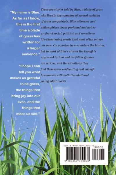 Common events become fantastical stories as they are chronicled by the protagonist Blue, a blade of grass who lives in the company of several varieties of grass compatriots. Blue is both witness and philosopher, with his comments and experiences becoming an allegory about profound and not so profound social, political and sometimes life-threatening events. Some encounters seem bizarre, but the thoughts that he and his fellow grasses express are serious and the situations they confront will resonate with adult and young adult readers alike. Fall in love with the delightful illustrations that are sprinkled throughout Blues adventures.