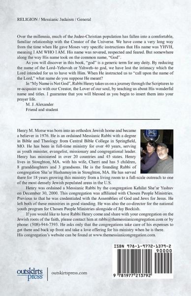 Over the millennia, much of the Judeo-Christian population has fallen into a comfortable, familiar relationship with the Creator of the Universe. We have come a very long way from the time when He gave Moses very specific instructions that His name was YHVH, meaning I AM WHO I AM. His name was revered, respected and feared. But somewhere along the way His name took on the common name, "God". As you will discover in this book, "god" is a generic term for any deity. By reducing the name of the Lord-Yehovah or Yahweh-to god, we have lost the intimacy which the Lord intended for us to have with Him. When He instructed us to "call upon the name of the Lord," what name do you suppose He meant? In "My Name is Not God", Rabbi Henry takes us on a journey through the Scriptures to re-acquaint us with our Creator, the Lover of our soul, by teaching us about His wonderful name and titles. I guarantee that you will blessed as you begin to insert them into your prayer life. M. J. Alexander Friend and student