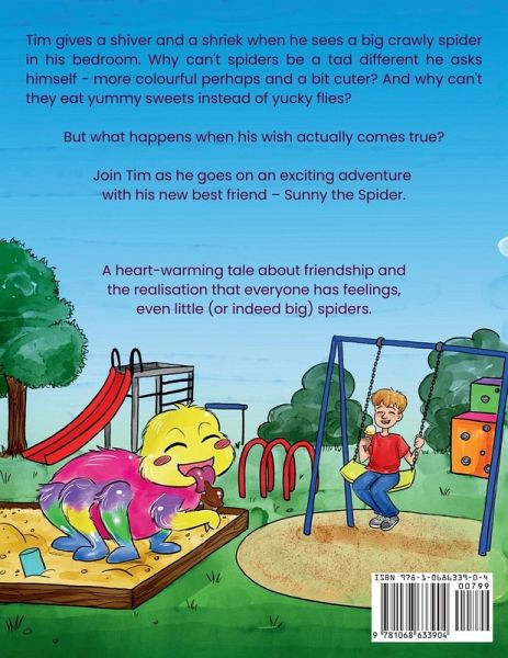 Tim gives a shiver and a shriek when he sees a big crawly spider in his bedroom. Why can't spiders be a tad different he asks himself - more colourful perhaps and a bit cuter? And why can't they eat yummy sweets instead of yucky flies? But what happens when his wish actually comes true? Join Tim as he goes on an exciting adventure with his new best friend - Sunny the Spider.