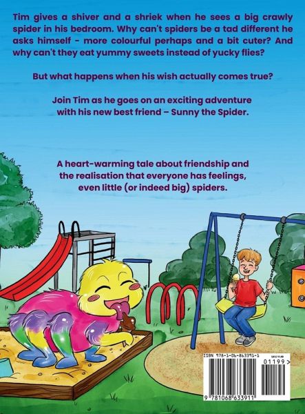 Tim gives a shiver and a shriek when he sees a big crawly spider in his bedroom. Why can't spiders be a tad different he asks himself - more colourful perhaps and a bit cuter? And why can't they eat yummy sweets instead of yucky flies? But what happens when his wish actually comes true? Join Tim as he goes on an exciting adventure with his new best friend - Sunny the Spider.