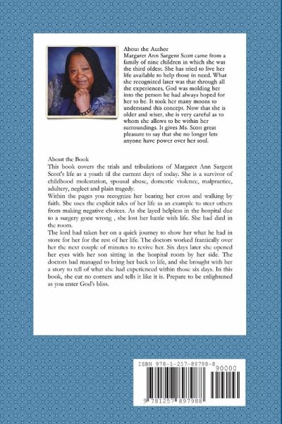 This book covers the trials and tribulations of Margaret Ann Sargent Scott's life as a youth til the current days of today. She is a survivor of childhood molestation, spousal abuse, domestic violence, malpractice, adultery and neglect as well as overcoming her trails and tribulations.