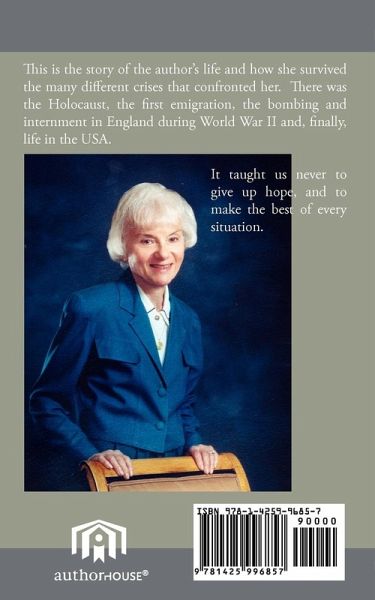This is the story of the author's life and how she survived the many different crises that confronted her. There was the Holocaust, the first emigration, the bombing and internment in England during World War II and, finally, life in the USA. It taught us never to give up hope, and to make the best of every situation.