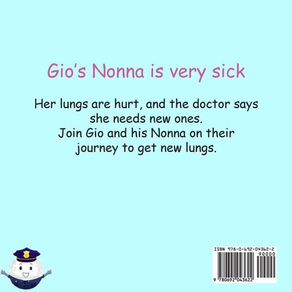 Gio's Nonna has been sick for a long time. Her lungs are hurt, and the doctor says she needs new ones. This is frustrating for Gio because he wants to play with her, but he can't. Join Gio as his patience and understanding are tested during his Nonna's journey to get new lungs. Note from the Author: I wrote this story to explain to my son what was going on with his grandmother. He was starting to ask a lot of questions, that I couldn't seem to answer quite right. I wrote the book, and had it drawn, so he could see what I was telling him. I wasn't expecting it to work so well, and to help other children as much as it did. I hope this assists you through the process of an organ transplant, like it did for my son.