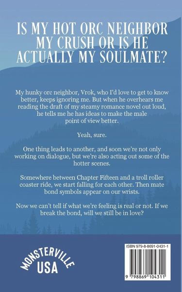 Is my hot orc neighbor my crush or is he actually my soulmate? My hunky orc neighbor, Vrok, who I'd love to get to know better, keeps ignoring me. But when he overhears me reading the draft of my steamy romance novel out loud, he tells me he has ideas to make the male point of view better. Yeah, sure. One thing leads to another, and soon we're not only working on dialogue, but we're also acting out some of the hotter scenes. Somewhere between Chapter Fifteen and a troll roller coaster ride, we start falling for each other. Then mate bond symbols appear on our wrists. Now we can't tell if what we're feeling is real or not. If we break the bond, will we still be in love?