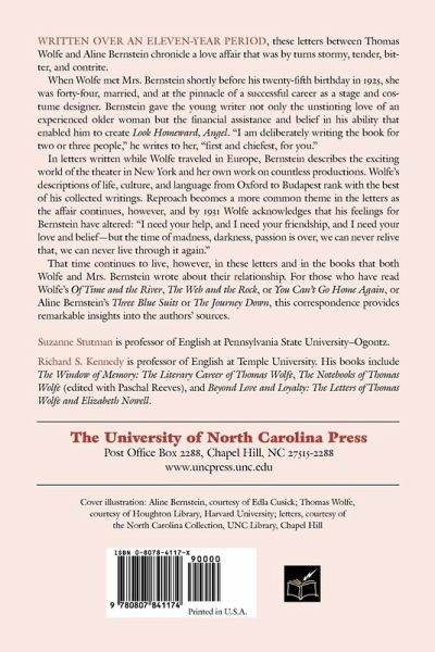 Written over an eleven-year period, these letters between Thomas Wolfe and Aline Bernstein chronicle a love affair that was by turns stormy, tender, bitter, and contrite. When Wolfe met Mrs. Bernstein shortly before his twenty-fifth birthday in 1925, she was forty-four, married, and at the pinnacle of a successful career as a stage and costume designer. Bernstein gave the young writer not only the unstinting love of an experienced older woman but the financial assistance and belief in his ability that enabled him to create Look Homeward, Angel. "I am deliberately writing the book for two or three people," he writes to her, "first and chiefest, for you." In letters written while Wolfe traveled in Europe, Bernstein describes the exciting world of the theater in New York and her own work on countless productions. Wolfe's descriptions of life, culture, and language from Oxford to Budapest rank with the best of his collected writings. Reproach becomes a more common theme in the letters as the affair continues, however, by 1931 Wolfe acknowledges that his feelings for Bernstein have altered: "I need your help, and I need your friendship, and I need your love and belief--but the time of madness, darkness, passion is over, we can never relive that, we can never live through it again." That time continues to live, however, in these letters and in the books that both Wolfe and Mrs. Bernstein wrote about their relationship. For those who have read Wolfe's Of Time and the River, The Web and the Rock, or You Can't Go Home Again, or Aline Bernstein's Three Blue Suits or The Journey Down, this correspondence provides remarkable insights into the authors' sources.