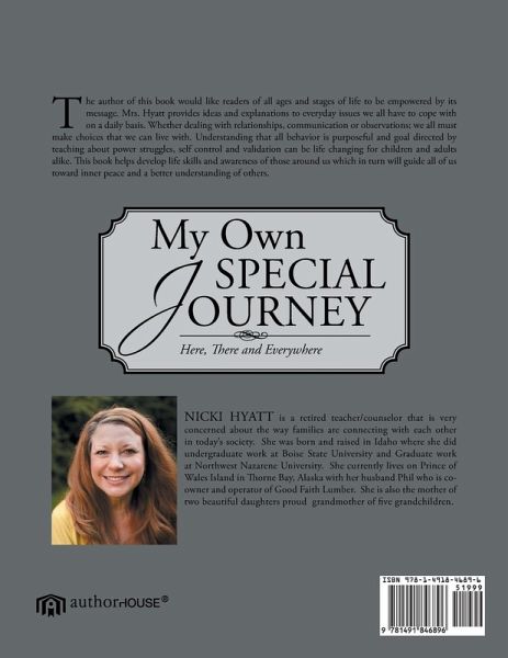 The author of this book would like readers of all ages and stages of life to be empowered by its message. Mrs. Hyatt provides ideas and explanations to everyday issues we all have to cope with on a daily basis. Whether dealing with relationships, communication or observations; we all must make choices that we can live with. Understanding that all behavior is purposeful and goal directed by teaching about power struggles, self control and validation can be life changing for children and adults alike. This book helps develop life skills and awareness of those around us which in turn will guide all of us toward inner peace and a better understanding of others.