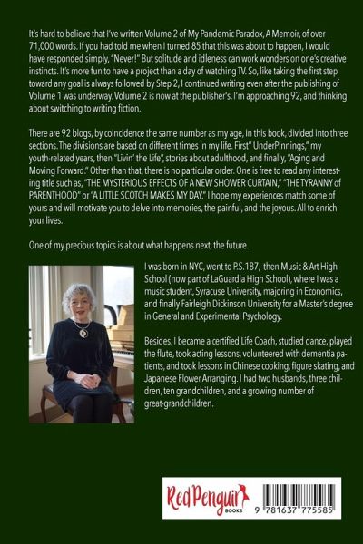 This Memoir is an authentic review of our author's life, including her time under her mother's thumb and seeing to the needs of her emotionally handicapped brother. It reveals how she escaped being a frightened little girl whose inner child was suffocating and became a fully realized, motivated, and creative woman. The MEMOIR is divided into three captivating sections: Underpinnings (youth), Livin' the Life (adulthood), and Aging and Moving Forward ( Senior Life). Each section is a treasure trove of blogs, accompanied by eye-catching four-color photographs that bring the narrative to life. The unique titles, such as "A LITTLE SCOTCH MAKES MY DAY," or "THE MYSTERIOUS EFFECT OF A NEW SHOWER CURTAIN," or "THE TYRANNY OF PARENTHOOD," are sure to pique your curiosity and keep you engaged. Please read "THE PATH TO POWER" in the third section of the book, Aging, and Moving Forward, in which she frees herself from her mother's domination by giving up her Gremlins. Other blogs discuss Gremlins in more detail. Lynn, the author, is not just a storyteller, but also a highly qualified professional. She has earned a Master's Degree in General and Experimental Psychology and is a certified Life Coach. Her academic and professional achievements underscore her expertise and make her journey even more compelling. Also, please take a look at "My Pandemic Paradox: A surprising development from this calamity." Volume 1 of this series.
