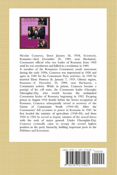 Nicolae Ceaüescu, (born January 26, 1918, Scornice¿ti, Romania-died December 25, 1989, near Bucharest), Communist official who was leader of Romania from 1965 until he was overthrown and killed in a revolution in 1989. A member of the Romanian Communist youth movement during the early 1930s, Ceaüescu was imprisoned in 1936 and again in 1940 for his Communist Party activities. In 1939 he married Elena Petrescu (b. January 7, 1919, Oltenia region, Romania-d. December 25, 1989, near Bucharest), a Communist activist. While in prison, Ceaüescu became a protégé of his cell mate, the Communist leader Gheorghe Gheorghiu-Dej, who would become the undisputed Communist leader of Romania beginning in 1952. Escaping prison in August 1944 shortly before the Soviet occupation of Romania, Ceaüescu subsequently served as secretary of the Union of Communist Youth (1944-45).