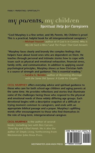Cecil Murphey provides reflections from his counseling experience to illuminate the challenges facing those who respond to the physical and emotional needs of both young children and aging parents. Each devotional begins with a description of a difficult or trying moment common to caregivers and ends with a prayer and a biblical reading.