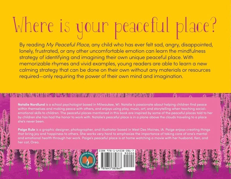 By reading My Peaceful Place, any child who has ever felt sad, angry, disappointed, lonely, frustrated, or any other uncomfortable emotion can learn the mindfulness strategy of identifying and imagining their own unique peaceful place. With memorizable rhymes and vivid examples, young readers are able to learn a new calming strategy that can be done on their own without any materials or resources required-only requiring the power of their own mind and imagination.