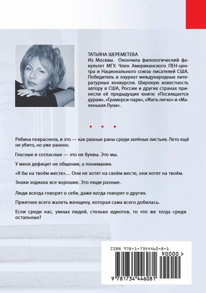 My Personal Collection is the fifth book by renowned author, Tatiana Sheremeteva. Published under an intriguing and provocative title, the book is by no means a series of stories about love and passion or romance. On the contrary, it is a reflection of the author's experiences, portraying her memorable punch lines, aphorisms, cute posts on Facebook, and phrases from her already published stories and novels that are widely quoted by readers, having assumed a life of their own. Of particular relevance is the section that contains Tatiana's critique of works by her fellow authors. The last part of the book is Tatiana's interview, or rather a transcript of the freehearted talk, with Vera Sukhinina, author of the Lady 40 Plus Project. My Personal Collection is a "digest" of the best writing by author Tatiana Sheremeteva. That's why it has a subtitle - Magnum Opus.¿¿¿¿¿¿ ¿¿¿¿¿¿¿¿¿ - ¿¿¿¿¿ ¿¿¿¿¿ ¿¿¿¿¿¿¿¿¿¿ ¿¿¿¿¿¿ ¿¿¿¿¿¿¿ ¿¿¿¿¿¿¿¿¿¿¿ ¿ ¿¿¿¿¿¿¿¿¿¿¿ ¿ ¿¿¿¿¿¿¿¿¿¿¿¿¿¿ ¿¿¿¿¿¿¿¿¿. ¿ ¿¿¿ ¿¿¿¿¿¿ ¿¿¿¿ ¿¿¿¿¿¿ ¿¿ ¿ ¿¿¿¿¿¿¿¿ ¿¿¿¿¿¿¿¿¿¿¿ ¿¿¿ ¿¿¿¿¿¿ ¿¿¿¿¿¿¿. ¿¿¿¿¿¿¿¿, ¿¿¿¿¿ - ¿¿¿ ¿¿¿¿¿¿¿¿¿¿ ¿¿¿¿ ¿¿¿¿¿¿, ¿¿¿¿¿¿¿¿¿¿ ¿¿¿¿¿ ¿¿¿¿¿ ¿¿ ¿¿¿¿¿¿¿¿¿¿¿¿, ¿¿¿¿¿¿¿¿, ¿¿¿¿¿¿¿¿¿¿ ¿¿¿¿¿ ¿ ¿¿¿¿¿¿¿¿, ¿¿¿¿¿¿¿¿ ¿¿ ¿¿¿ ¿¿¿¿¿¿¿¿¿¿¿¿¿¿ ¿¿¿¿¿¿¿¿ ¿ ¿¿¿¿¿¿¿, ¿¿¿¿¿¿¿ ¿¿¿¿¿¿¿¿¿ ¿¿ ¿¿¿¿¿¿ ¿ ¿¿¿¿¿¿ ¿¿¿¿¿¿¿¿¿¿¿¿¿¿¿ ¿¿¿¿¿. ¿¿¿¿¿¿¿¿¿¿ ¿¿¿¿¿¿¿¿¿¿ ¿¿¿¿¿¿¿¿¿¿¿ ¿¿¿¿¿¿, ¿ ¿¿¿¿¿¿¿ ¿¿¿¿¿¿¿¿¿¿ ¿¿¿¿¿¿¿¿¿¿¿ ¿¿¿¿¿¿ ¿¿¿¿¿¿¿¿ ¿¿ ¿¿¿¿¿¿¿¿¿¿¿¿ ¿¿ ¿¿¿¿¿¿ ¿¿ ¿¿¿¿¿¿¿¿¿¿¿¿¿ ¿¿¿¿. ¿¿¿¿¿¿¿¿¿ ¿¿¿¿¿ ¿¿¿¿¿¿¿¿, ¿ ¿¿¿¿¿¿ ¿¿¿¿¿¿¿¿¿¿¿ ¿¿¿¿¿¿¿¿ ¿¿¿¿¿¿¿ ¿¿¿¿¿¿¿¿¿¿¿ ¿ ¿¿¿¿¿ ¿¿¿¿¿¿¿¿¿, ¿¿¿¿¿¿¿ ¿¿¿¿¿¿¿ ¿¿¿¿ ¿¿¿¿¿ ¿¿¿¿. ¿¿¿¿¿¿ ¿¿¿¿¿¿¿¿¿ - ¿¿¿ ¿¿¿¿¿¿¿¿ ¿¿¿¿¿¿ ¿¿¿¿¿¿¿ ¿¿¿¿¿¿. ¿ ¿¿¿¿¿¿ ¿¿¿¿¿¿¿¿¿ ¿¿¿¿¿ ¿¿¿¿¿¿ ¿¿¿¿¿¿¿¿¿: Magnum Opus.