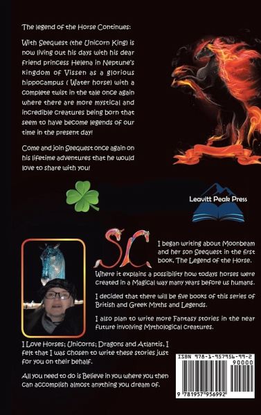 The legend of the Horse Continues: With Seequest (the Unicorn King) is now living out is days with his dear friend princess Helena in Neptune's kingdom of Vissen as a glorious hippocampus ( Water horse) with a complete twist in the tale once again where there are more mystical and incredible creatures being born that seem to have become legends of our time in the present day!Come and join Seequest once again on his lifetime adventures that he would love to share with you!