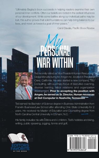 My Personal War Within takes readers to Birmingham, Alabama, during the 1950s and 1960s and the turbulent days of the Jim Crow Laws, the Ku Klux Klan, and the John Birch Society. These were difficult times for those growing up black in a country struggling to give identity to a race that played such an important part of its infrastructural growth. Ted Bagley carries the readers on a ride through his life from the sometimes racist streets of southern cities like Birmingham to corporate America where he is today. He very skilfully shows how family values, relationships, the military, and education were the tool kits to his success.