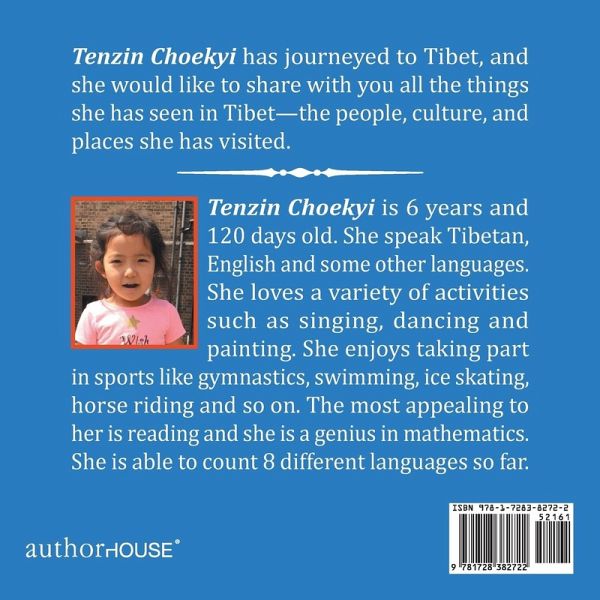 Tenzin Choekyi is 6 years and 120 days old. She speak Tibetan, English and some other languages. She loves a variety of activities such as singing, dancing and painting. She enjoys taking part in sports like gymnastics, swimming, ice skating, horse riding and so on. The most appealing to her is reading and she is a genius in mathematics. She is able to count 8 different languages so far.