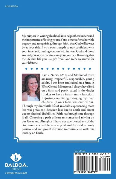 My purpose in writing this book is to help others understand the importance of loving yourself and others after a horrible tragedy, and recognizing, through faith, that God will always be at your side. I wish you strength to stay confident with your inner self, finding comfort within from God and those around you as you continue on your journey. Knowing that the life that left you is a gift from God to be treasured for your lifetime.
