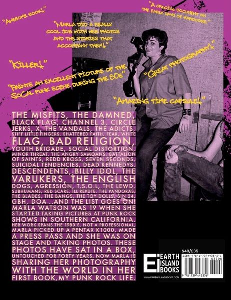 Growing up as a rebellious teenager in the suburbs of Los Angeles, hanging out at gigs and gaining access to the now-legendary bands of the era, Marla Watson is now unleashing her rarely seen hardcore punk photography from the early 1980's in this new book entitled 'My Punk Rock Life'. "I never considered myself to be a professional photographer but more of a historian. Regardless, I took some pretty great photos right alongside some of the greats like Edward Colver, Alison Braun and Glen E. Friedman. In late 1983 I travelled to London for two months and took pictures of all my favourite punk bands of that era. Life is a lot of fun when you are young and unencumbered. My negatives have been safely stored in my attic until the Covid years when I had extra time on my hands to scan them and create a book." Marla's book emphasises the fans point of view. Reaching out to both friends and strangers to write short pieces about what it felt like to be a punk back then, including personal stories and experiences. The feedback so far has been massively positive from the likes of Ian Mackaye, Jello Biafra, Keith Morris, Mike Burkett, Jeff Nelson and others, many of whom are featured in the book. "A crucial document on the early days of US hardcore!" "A great archive of that time period. The bands, the people, the venues... everything is so well documented." "Marla paints an excellent picture of the SoCal punk scene during the 80s with her photography and anecdotes." Marla started taking pictures at Los Angeles punk shows in the early 1980's, just as the US punk hardcore scene was emerging. This was her salvation. She made a press pass and stood on the side of the stage with her camera during all those amazing shows. She has collected the photography from that experience of a lifetime into this 254 page book. With over 300 high quality and rarely seen images from the infancy of the hardcore punk scene featuring seminal acts such Black Flag, Minor Threat, The Dead Kennedys, The Misfits, The Damned, Circle Jerks, Bad Religion, The Vandals, Channel 3, The Adicts, Stiff Little Fingers, Shattered Faith, Fear, White Flag, Youth Brigade, Social Distortion, The Angry Samoans, Battalion of Saints, Redd Kross, 7 Seconds, Suicidal Tendencies, Descendents, Bad Brains, Discharge, UK Subs, The Clash, The Varukers, The English Dogs, T.S.O.L, The Lewd, Subhumans, Red Scare, Ill Repute, The Pandoras, The Blades, The Bangs, The Toy Dolls, Sin 34, GBH, The Dickies, DOA, and the list goes on! These photos have sat in a box, untouched for forty years. Now Marla is sharing her photography with the world in her first book; 'My Punk Rock Life'.