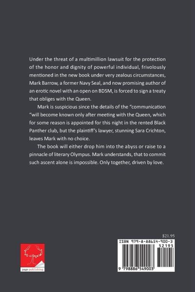 Under the threat of a multimillion lawsuit for the protection of the honor and dignity of powerful individual, frivolously mentioned in the new book under very zealous circumstances, Mark Barrow, a former Navy Seal, and now promising author of an erotic novel with an open on BDSM, is forced to sign a treaty that obliges with the Queen. Mark is suspicious since the details of the "communication "will become known only after meeting with the Queen, which for some reason is appointed for this night in the rented Black Panther club, but the plaintiff's lawyer, stunning Sara Crichton, leaves Mark with no choice. The book will either drop him into the abyss or raise to a pinnacle of literary Olympus. Mark understands, that to commit such ascent alone is impossible. Only together, driven by love.