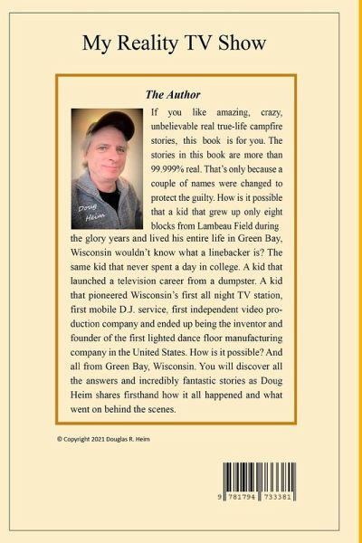 If you like amazing, crazy, unbelievable real true-life campfire stories, this book is for you. The stories in this book are more than 99.999% real. That's only because a couple of names were changed to protect the guilty. How is it possible that a kid that grew up only eight blocks from Lambeau Field during the glory years and lived his entire life in Green Bay, Wisconsin wouldn't know what a linebacker is? The same kid that never spent a day in college. A kid that launched a television career from a dumpster. A kid that pioneered Wisconsin's first all night TV station, first mobile D.J. service, first independent video production company and ended up being the inventor and founder of the first lighted dance floor manufacturing company in the United States. How is it possible? And all from Green Bay, Wisconsin. You will discover all the answers and incredibly fantastic stories as Doug Heim shares firsthand how it all happened and what went on behind the scenes.
